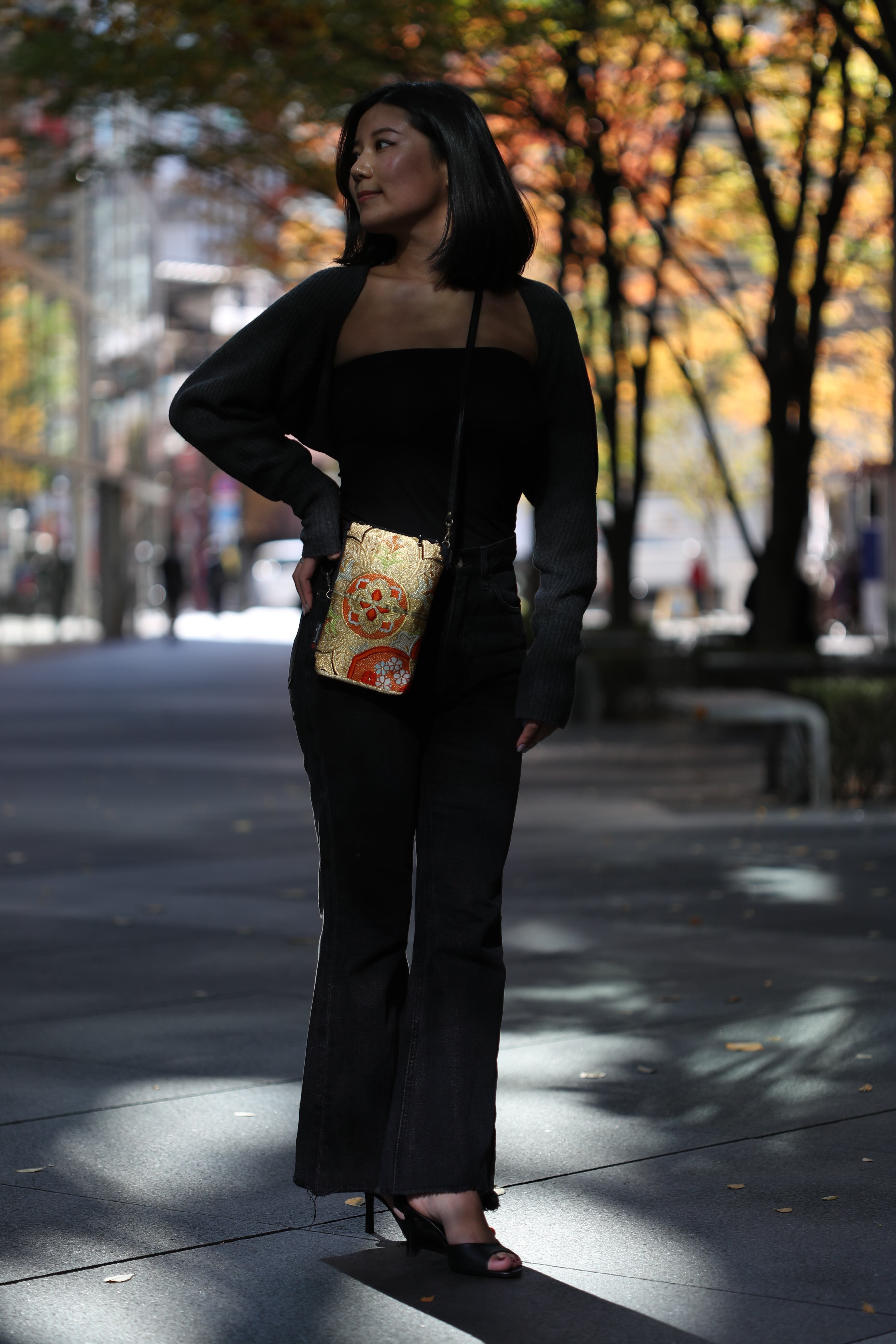 Kimono Tango's Sakosh is compact and lightweight, ideal for travel, outdoor activities and everyday use. Despite its casual idem, the material Nishijin Nishikiori subtly expresses an elegant sense of luxury.